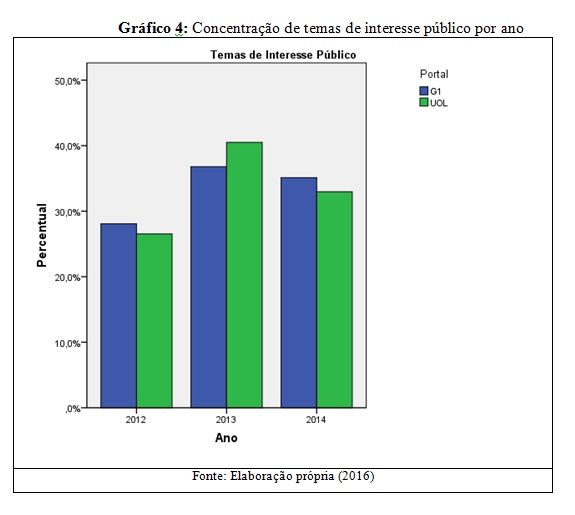 - Gráfico 4 – Concentração de temas de interesse público por ano