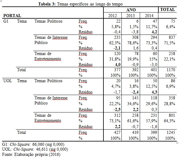 - Tabela 3 - Temas específicos ao longo do tempo